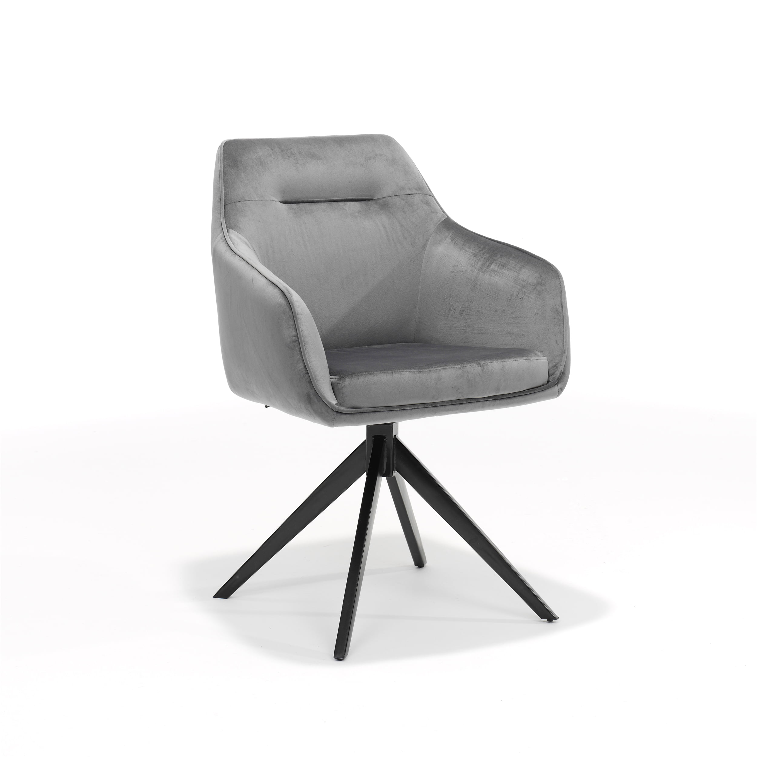 Goossens Stoel Laurens lichtgrijs stof graden draaibaar met armleuning,