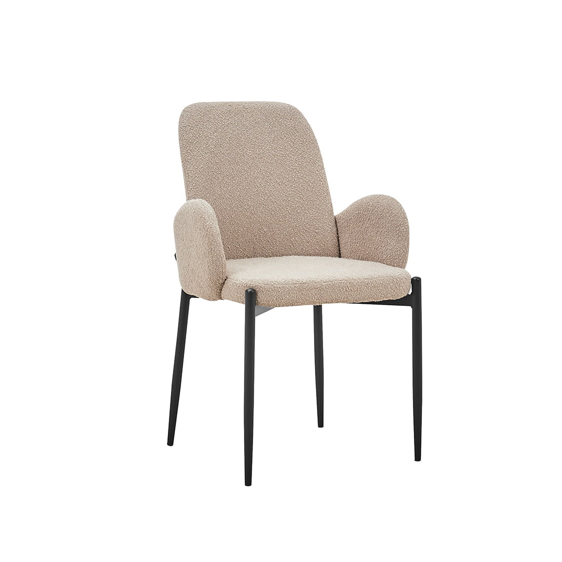 Deze leuke armstoel is zowel luxe als trendy en is een echte aanwinst voor je eet- of woonkamer. De comfortabele zitting rust op een modern zwart onderstel. Doordat de stoel verkrijgbaar is in meerdere kleuren kun je er leuk mee variëren! Deze stoel heeft een zithoogte van 48 cm en een zitdiepte van 45,5 cm, de armleuningen zijn 18 cm hoog. Bouclé is een stof dat bestaat uit geweven patronen, draden en lussen van verschillende stoffen, hierdoor ontstaat een grovere structuur welke zacht aanvoelt. Deze stoel heeft een zithoogte van 45,5 cm en een zitdiepte van 44,5 cm. Verkrijgbaar in meerdere kleuren.
